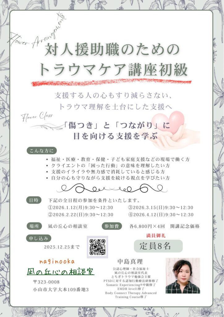 だからこそ、【対人援助職のためのトラウマケア講座 初級】を開催しています。